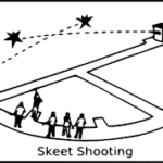 Arme : fusil de chasse en calibre 12 ou inférieur 8 postes de tir sur un parcours en arc de cercle, 8e poste au centre de l’arc de cercle. 2 cabanes de lancement (PULL et MARK ou Haute et Basse) aux extrémités du parcours. 1 cartouche par plateau. Programme : Poste 1 : simple de
